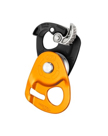 Petzl fixe pulley, light and compact, designed to be used in hoists and deviators of loads. fixed side plates that allow a quick placement and combined with a mechanical blocker. Contains sheave with self lubricating bearings to ensure good performance.